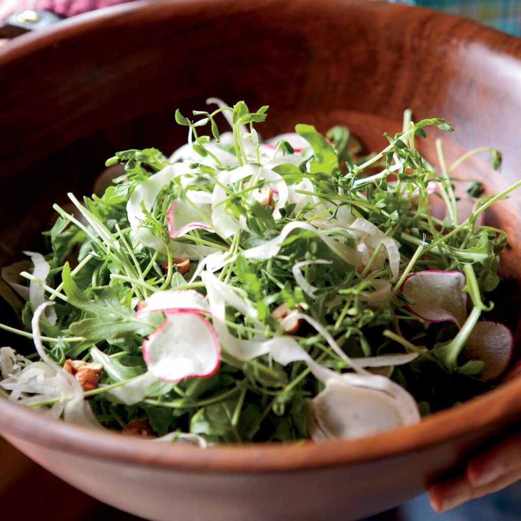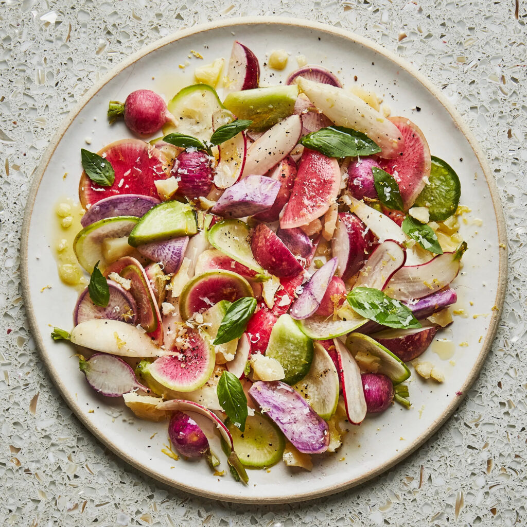 Radishes add crunch and mild spice. They work especially well in lighter spring meals.